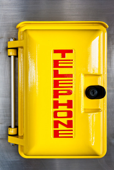 Emergency telephone box on steel plate